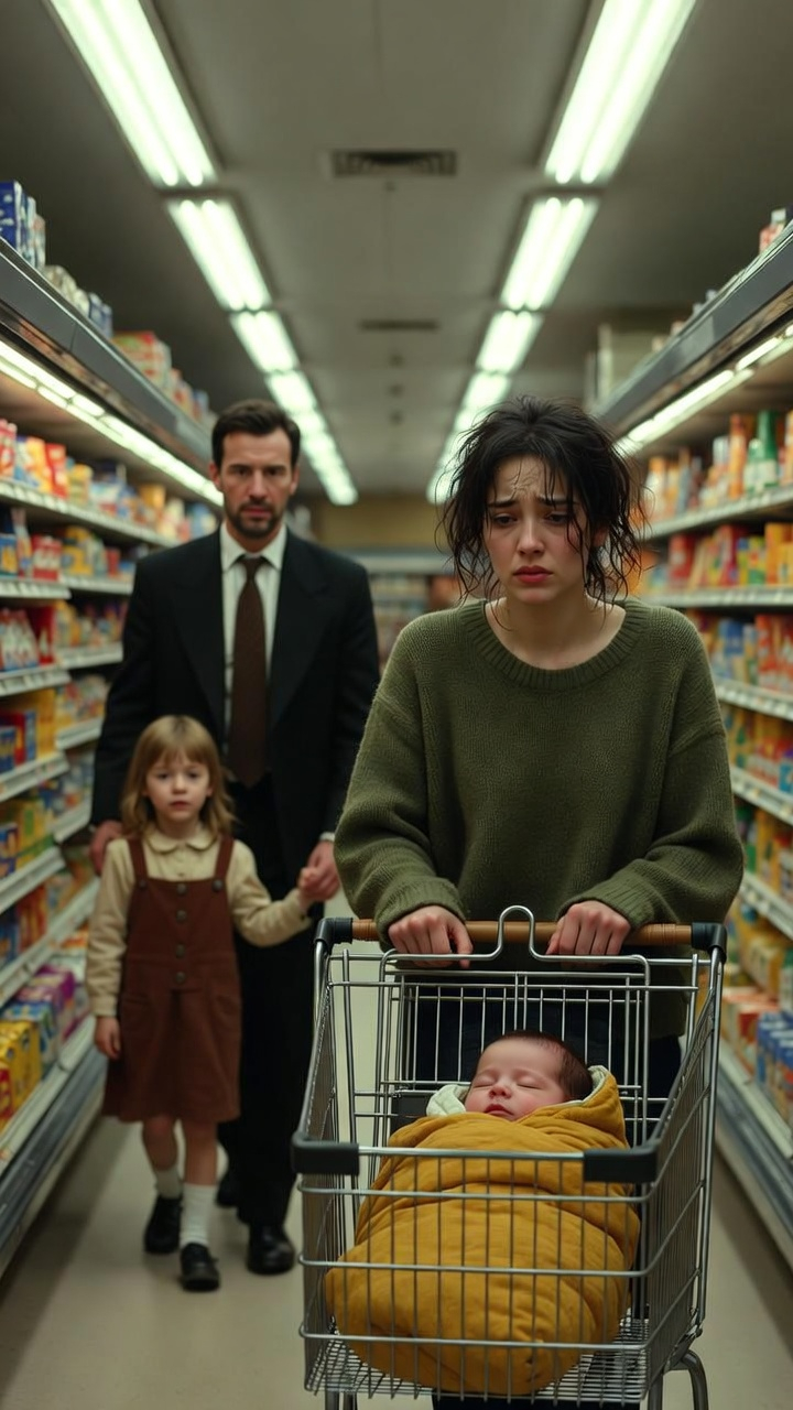A young woman, no older than twenty-five, stepped up to the register. She looked like someone who had fought too many battles in silence. She wore an oversized coat and worn-out shoes. In one arm, she carried a crying baby wrapped in an old blanket. With the other, she held the hand of a small girl.