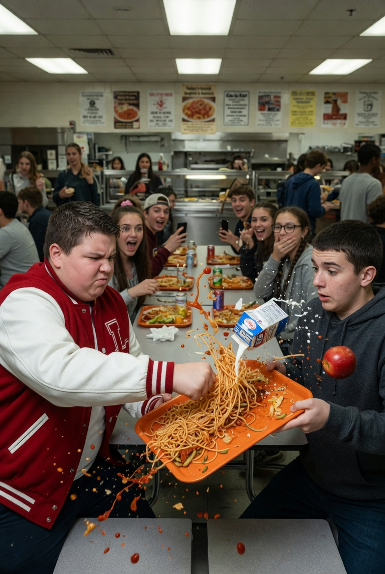 Brad’s face turned a shade of red that matched the ketchup on the floor. His ego was fracturing in real-time. He couldn’t let this slide. Not in front of the whole school. Not in front of the girls.